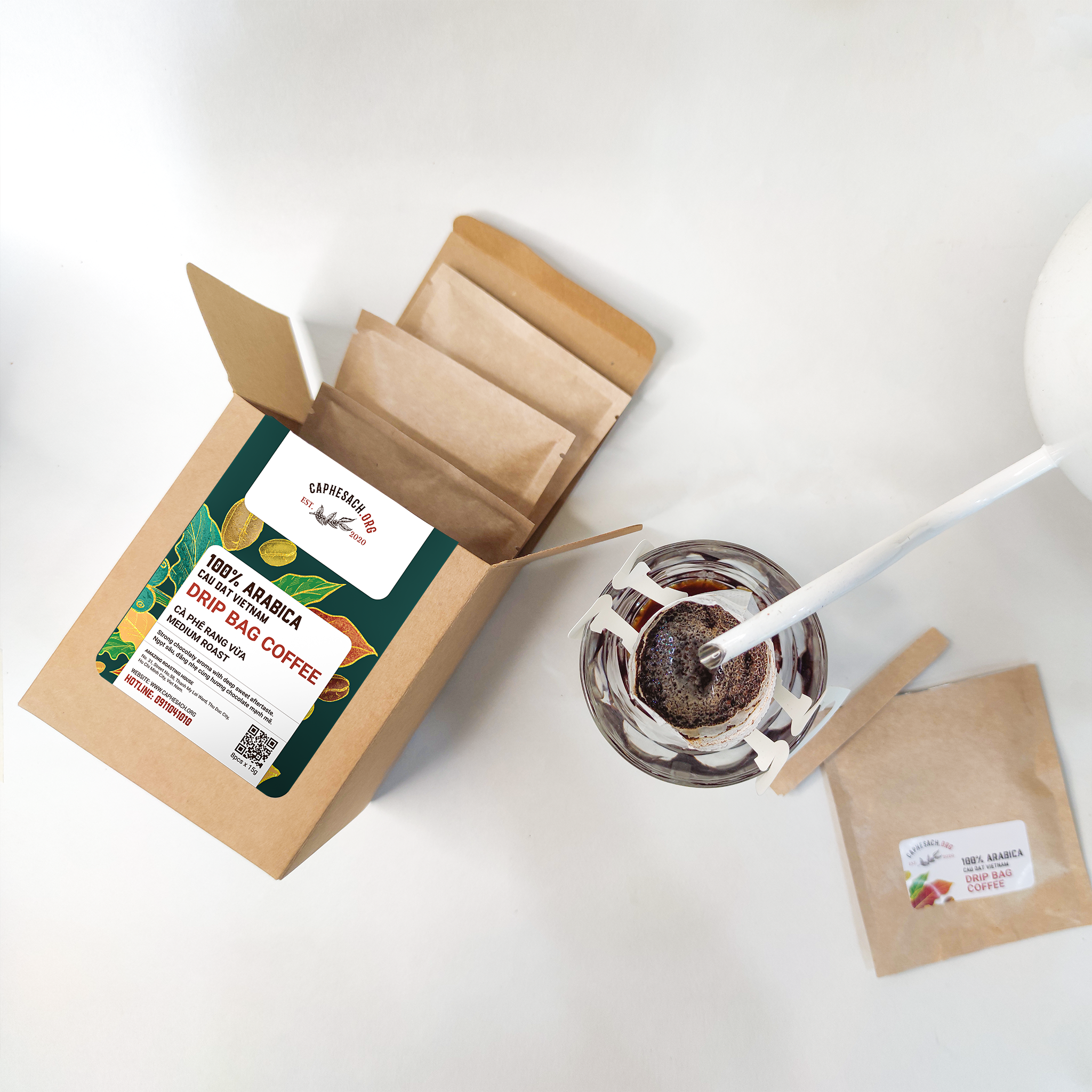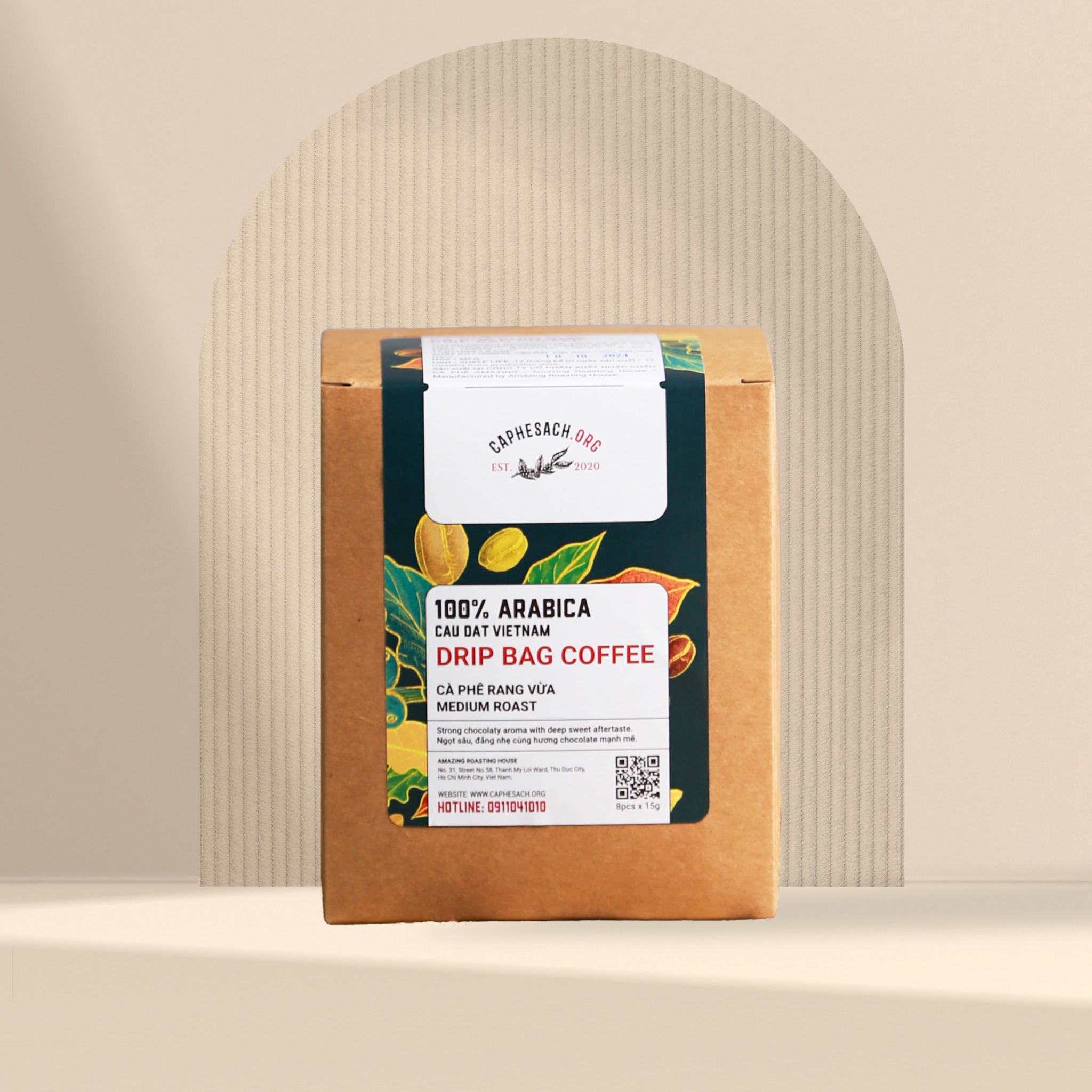 Cà phê Túi Lọc Drip Bag 100% Arabica Rang Vừa - Hộp 8 gói x 15G - Ngọt sâu, đắng nhẹ.